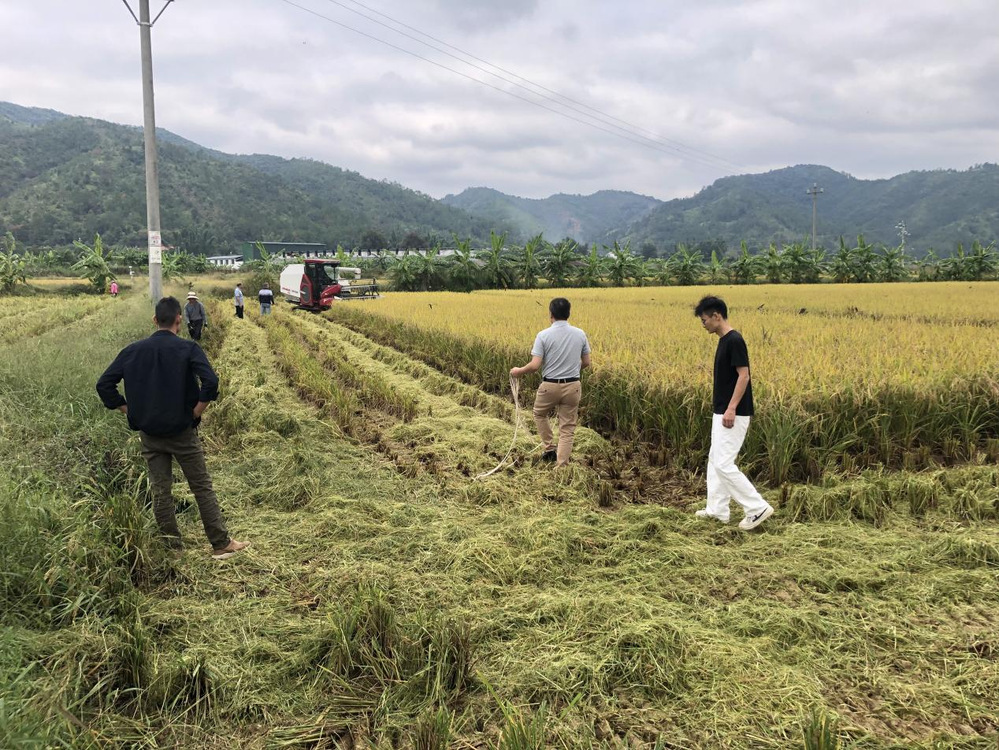 10月31日,河源市和平县河东村的百亩连片示范基地田野间机声轰鸣,示范田迎来了今年的第二次收割。由河源市农业农村局、和平县农业农村局、华南农业大学以及和平县古寨镇人民政府组成的测产团队对位于和平县古寨镇河东村的优质水稻品种引进与应用示范项目二百亩示范片进行测产验收,经现场实割测产,结果显示:二百亩示范片平均亩产429.2公斤,较当地平均亩产提高5.6%,示范田化肥农药用量减少7.0%,节本增效7.8%,实测结果达到了绩效目标要求,该项目实施主体为和平县丝苗米产业园建设实施主体之一的和平县东颢种养专业合作社。