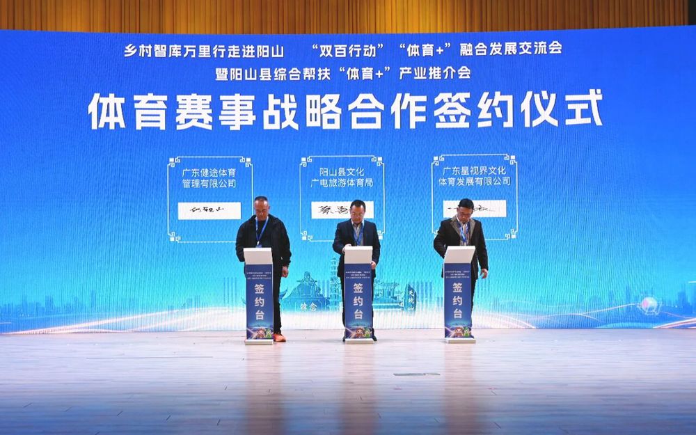 体育赛事合作为产业发展注入活力。阳山县文化广电旅游体育局与广东健途体育管理有限公司、广东星视界文化体育发展有限公司达成专项合作,未来将共同策划运营系列品牌体育赛事,丰富“体育+文旅”“体育+农业”场景,进一步提升阳山“体育+”产业的知名度与影响力。