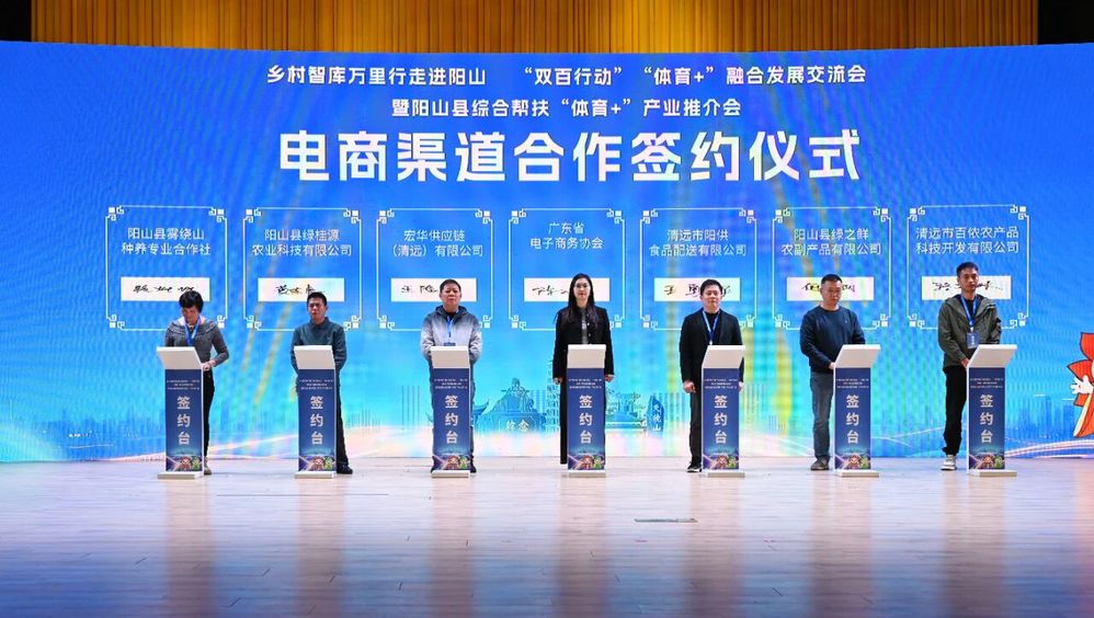 农特产品推广打通“出山入湾”新通道。广东省电子商务协会牵头组织渠道商资源,与清远市阳供食品配送有限公司、宏华供应链(清远)有限公司、阳山县绿之鲜农副产品有限公司、阳山县绿桂源农业科技有限公司、清远市百侬农产品科技开发有限公司、阳山县雾绕山种养专业合作社6家阳山本地农业企业及合作社签约,通过电商平台搭建、产销对接机制建立,将拓宽特色农产品销售渠道,实现“赛事流量”向“产品销量”的转化。