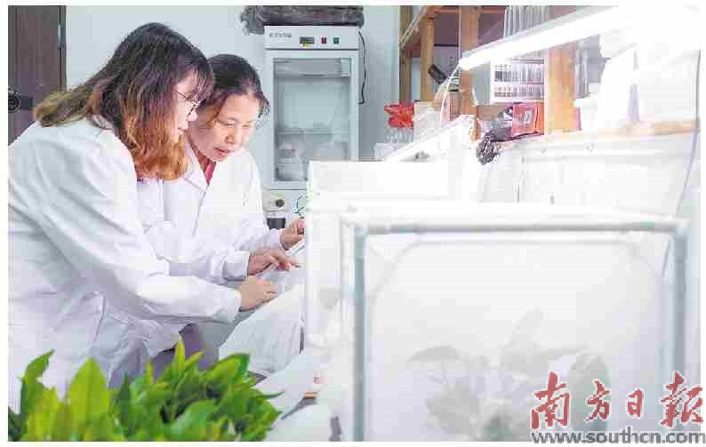 华南农业大学紫金蝉茶团队师生进行茶小绿叶蝉扩繁。资料图片